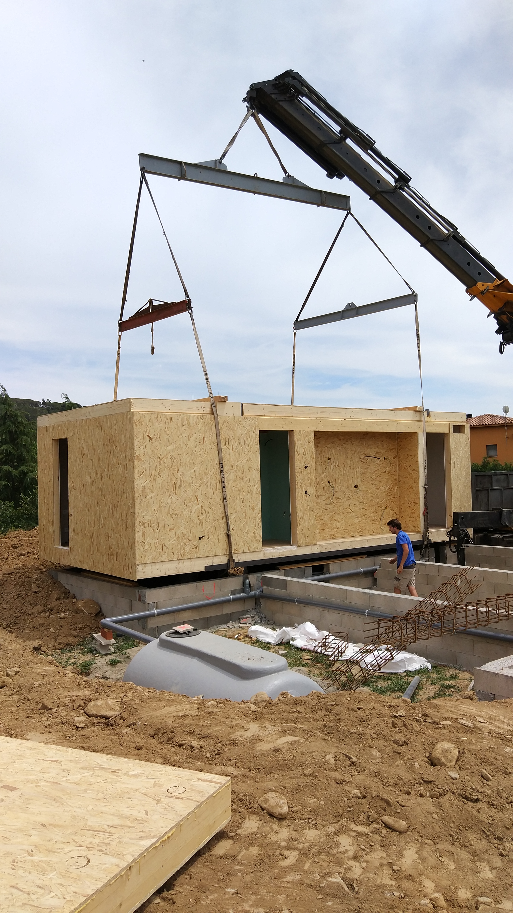 Después de un mes de trabajo en taller esta semana hemos hecho el transporte e instalación de los módulos de la casa modelo H en Palautordera. En una semana hemos hecho realidad el sueño, la sorpresa de los vecinos es máxima, casi tanto como nuestra satisfacción.