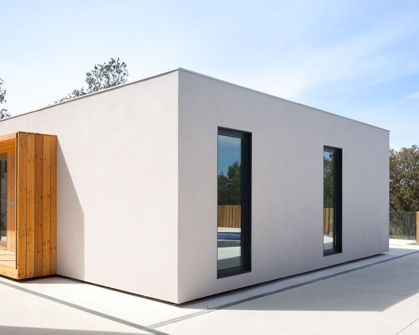Vàrem tenir la sort de poder construir la nostra primera casa prefabricada en una parcel·la amb unes vistes privilegiades de l’Empordà. Juntament amb els propietaris vàrem dissenyar una casa que sembla un porxo que contempla el paisatge. I la piscina rodona va ser un gran encert!