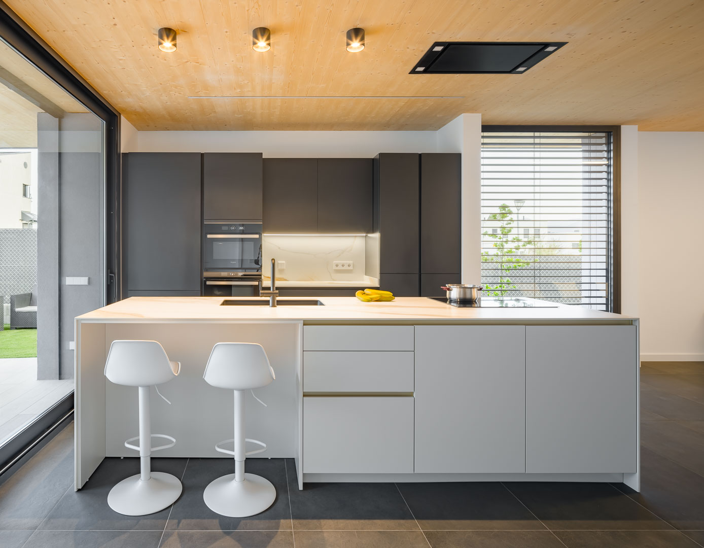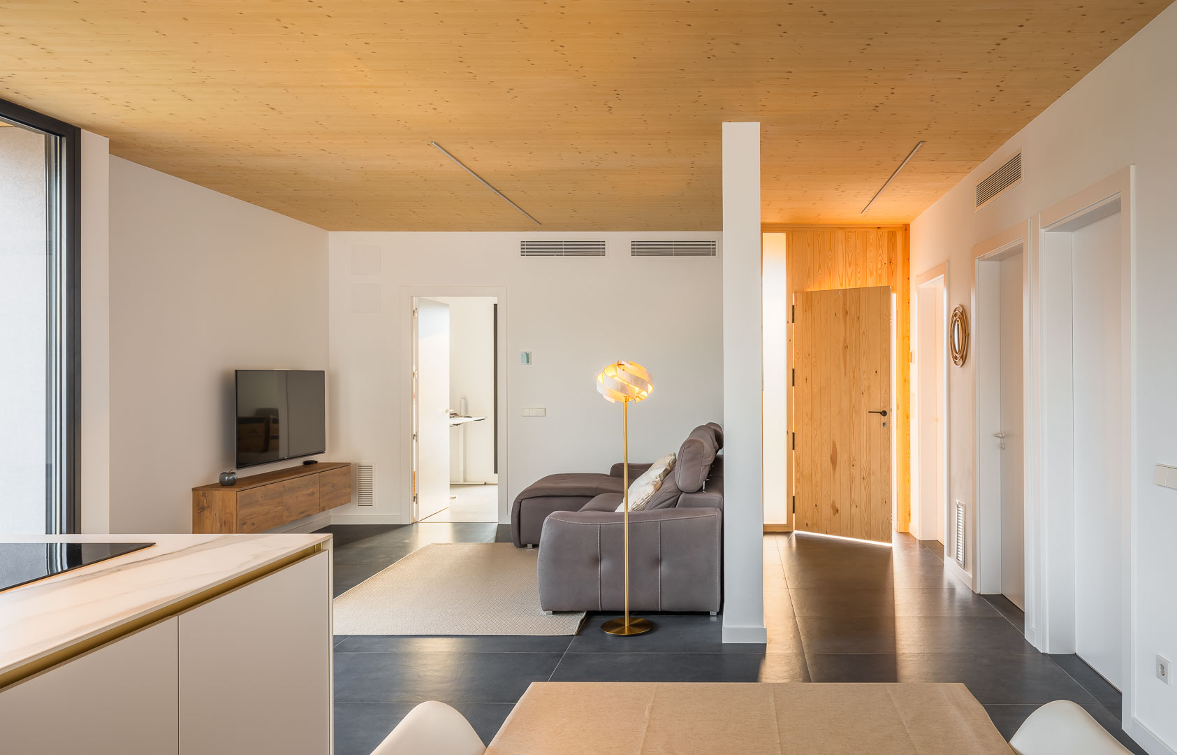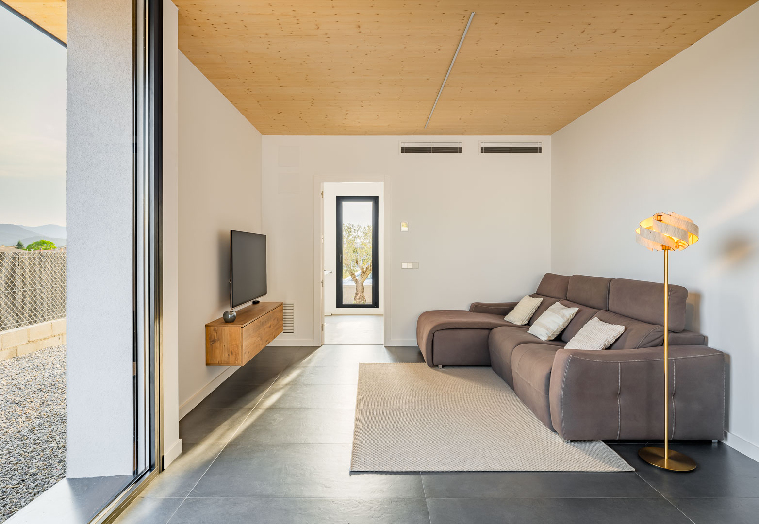En aquesta casa hem dissenyat, juntament amb els propietaris, un espai on cuina, menjador i sala d’estar comparteixen un gran porxo que connecta la casa amb la piscina i que és la delícia de les tardes d’estiu.